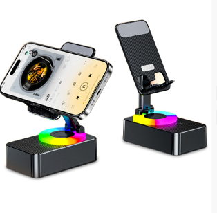 Phone Stand with Bluetooth Speaker. This versatile 2-in-1 device combines a stable, universal phone holder with a high-fidelity speaker, creating the ultimate compact entertainment hub. The adjustable stand provides the perfect viewing angle for movies, video calls, and streaming content, while the integrated Bluetooth speaker delivers rich, clear audio that far surpasses your phone's built-in speakers.