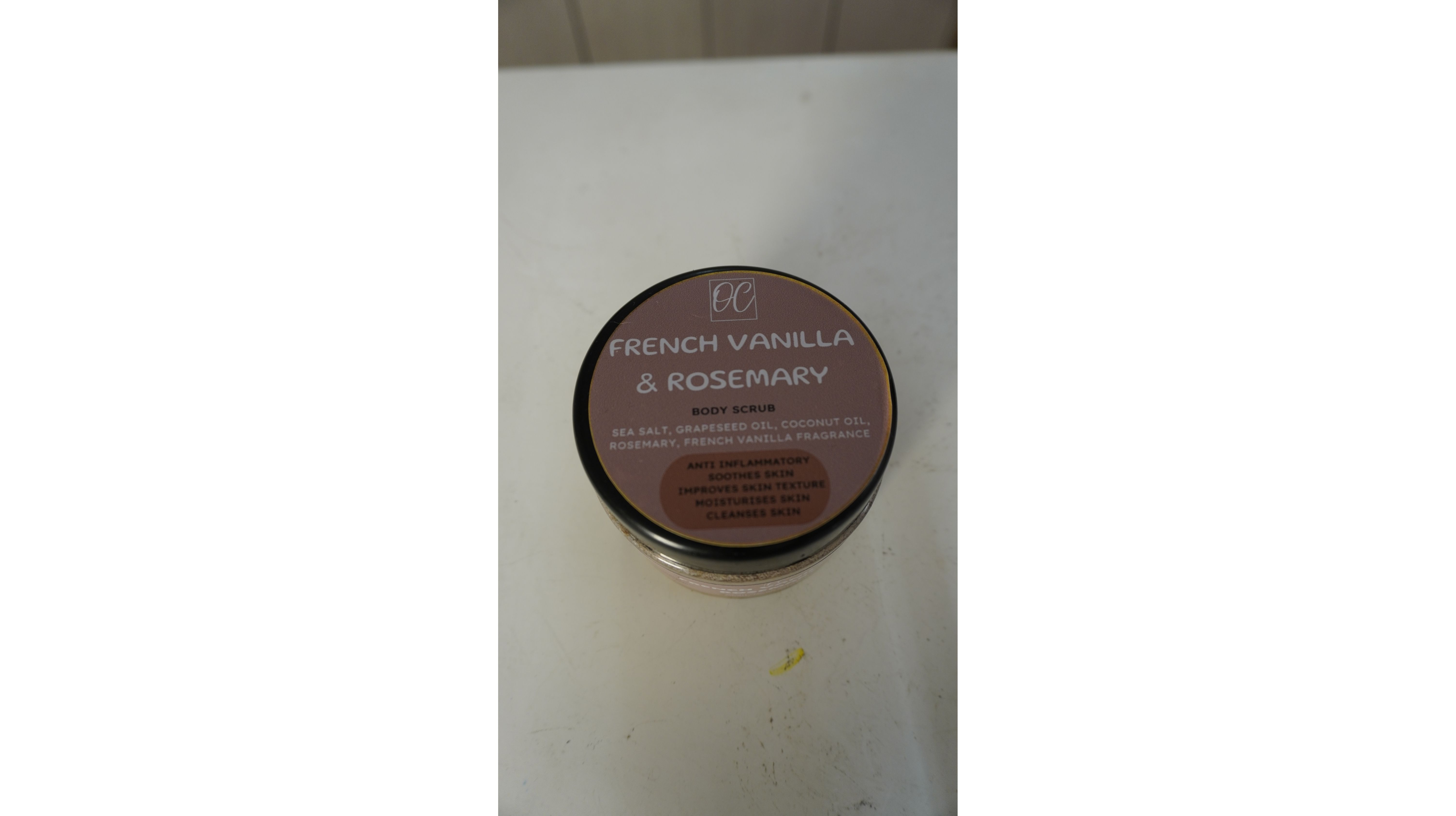 Indulge your senses in a harmonious blend of sweet vanilla and fresh rosemary with our French Vanilla & Rosemary Body Scrub.