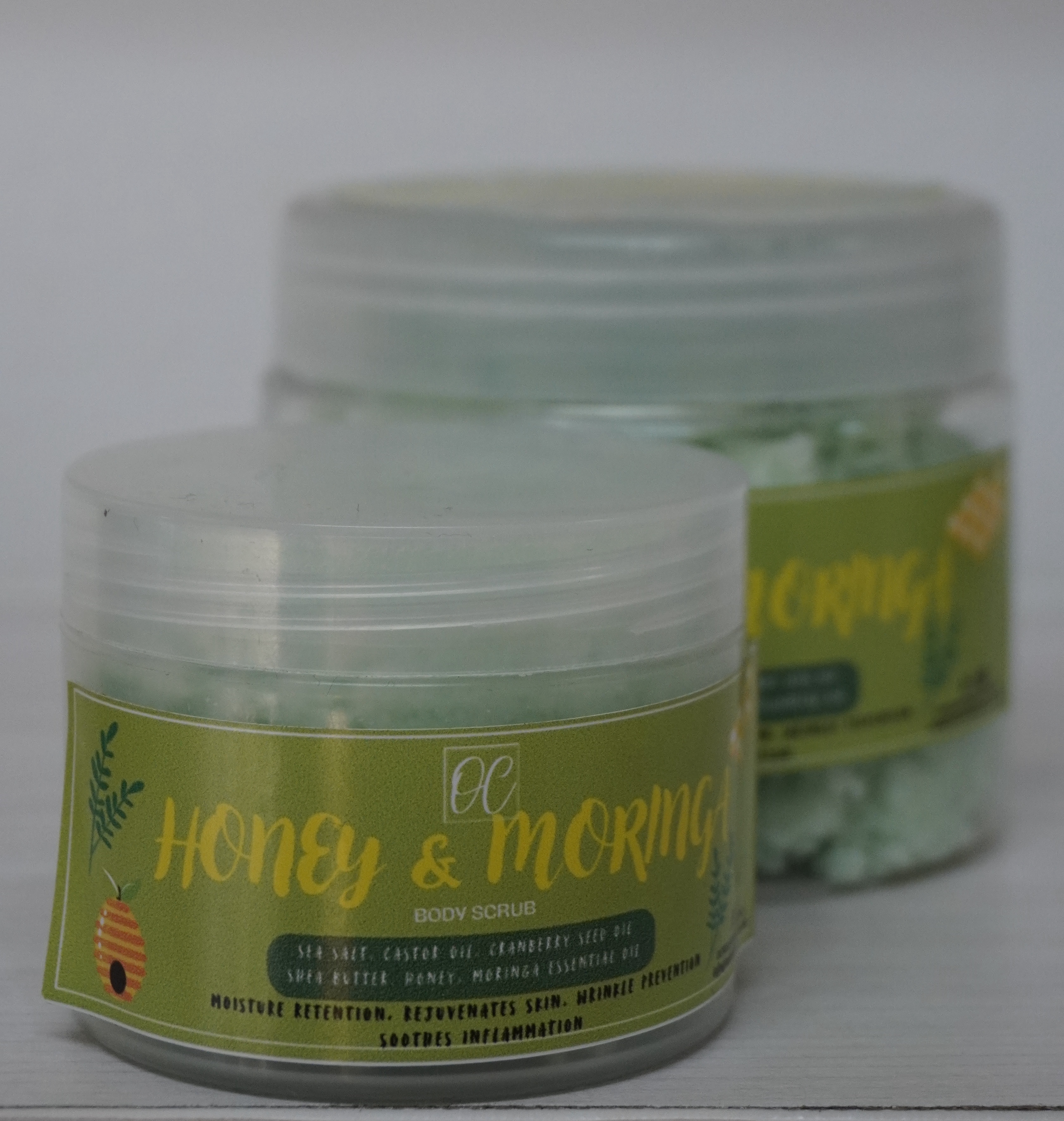 The Honey & Moringa Body Scrub is crafted to gently exfoliate, hydrate, and replenish your skin using fine sugar crystals, organic honey, and moringa oil extract, rich in antioxidants and vitamins.