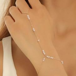 Elegant Finger Ring Chain Bracelet connecting a ring and bracelet with a delicate chain. Available in silver, gold, and rose gold.