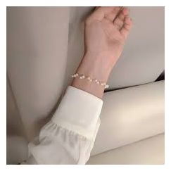 Korean-style silver-tone stitching bracelet with imitation pearls. Elegant, adjustable, and perfect for women’s fashion.